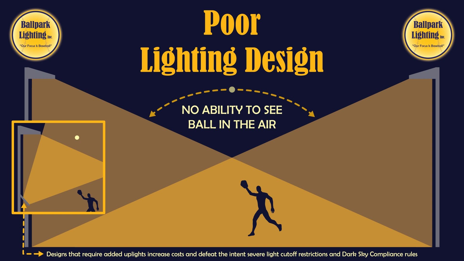 If up lights were not added, at additional project cost, players could not see the arc of the ball over 2nd base, the football thrown or kicked above the cutoff, causing the safety of the player to be compromised.